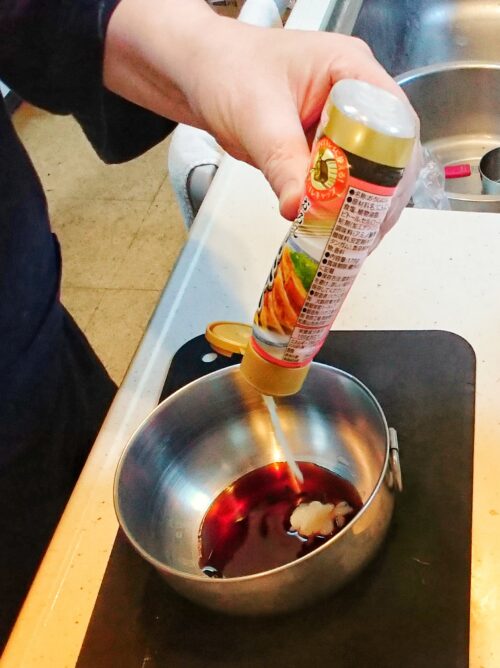 煮切った 酒・味醂 は、醤油・ごま油 で冷やされ