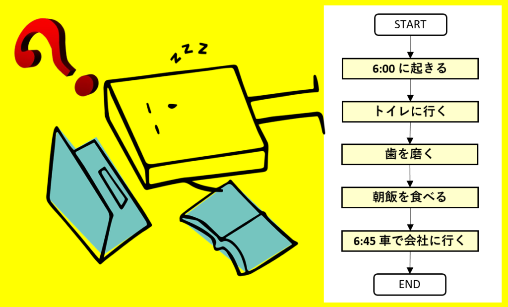 つまり、人間が分かるように 各動作命令の流れ を表したもので、